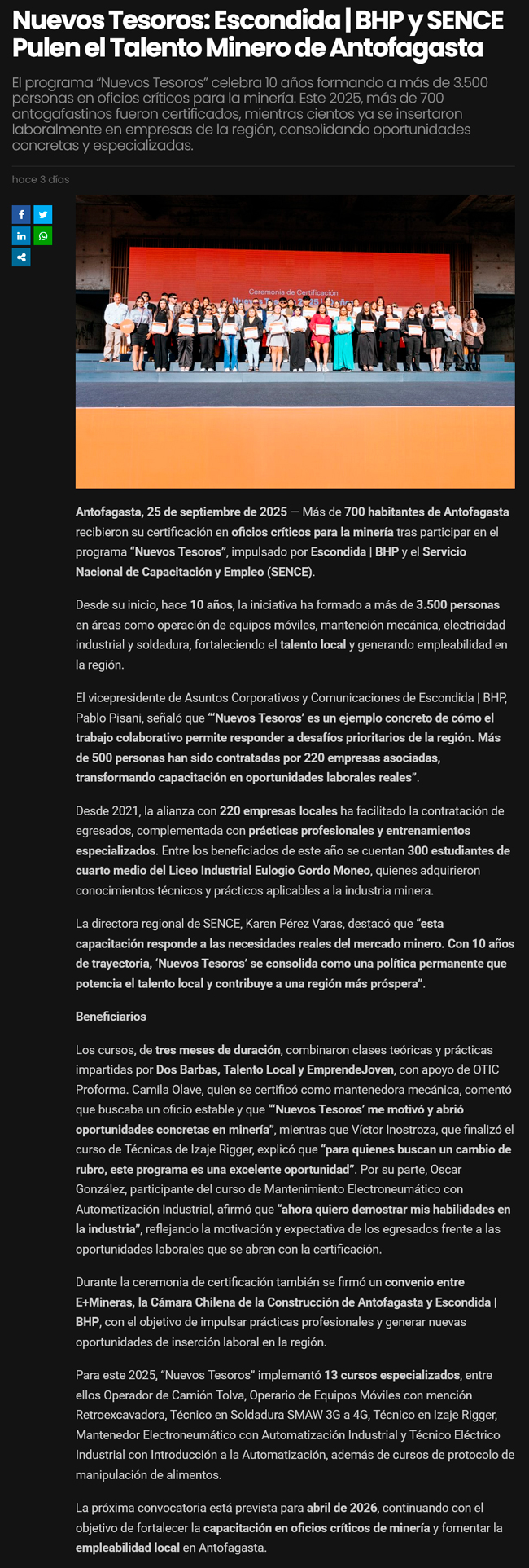 Nueva certificación del Programa “Nuevos Tesoros” - (TVN Antofagasta)