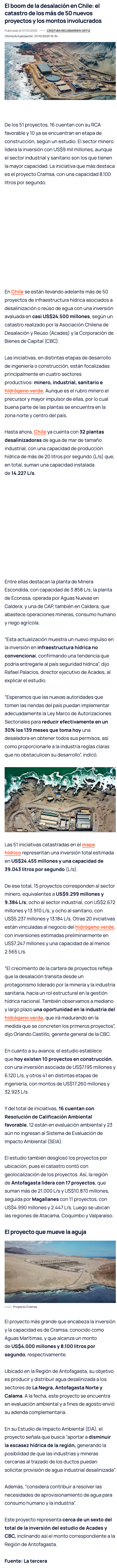 Catastro de desalación en Chile: se desarrollan 51 nuevos proyectos avaluados en US$24 mil millones - (Pulso)