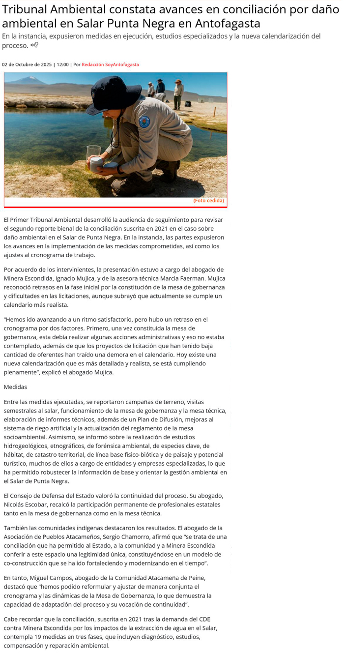 1TA revisa avance de conciliación por daño ambiental en Salar Punta Negra - (El Mercurio de Calama)
