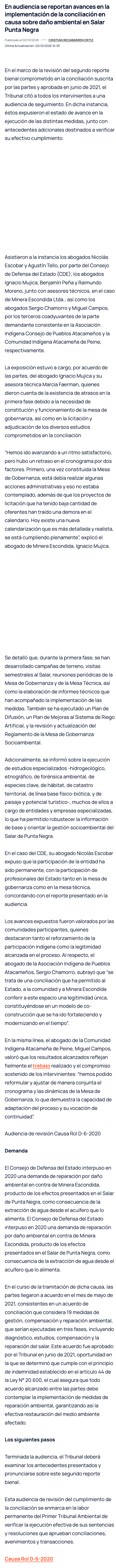 Tribunal revisa avances de conciliación ambiental entre Minera Escondida y comunidades del Salar de Punta Negra - (reporteminero)