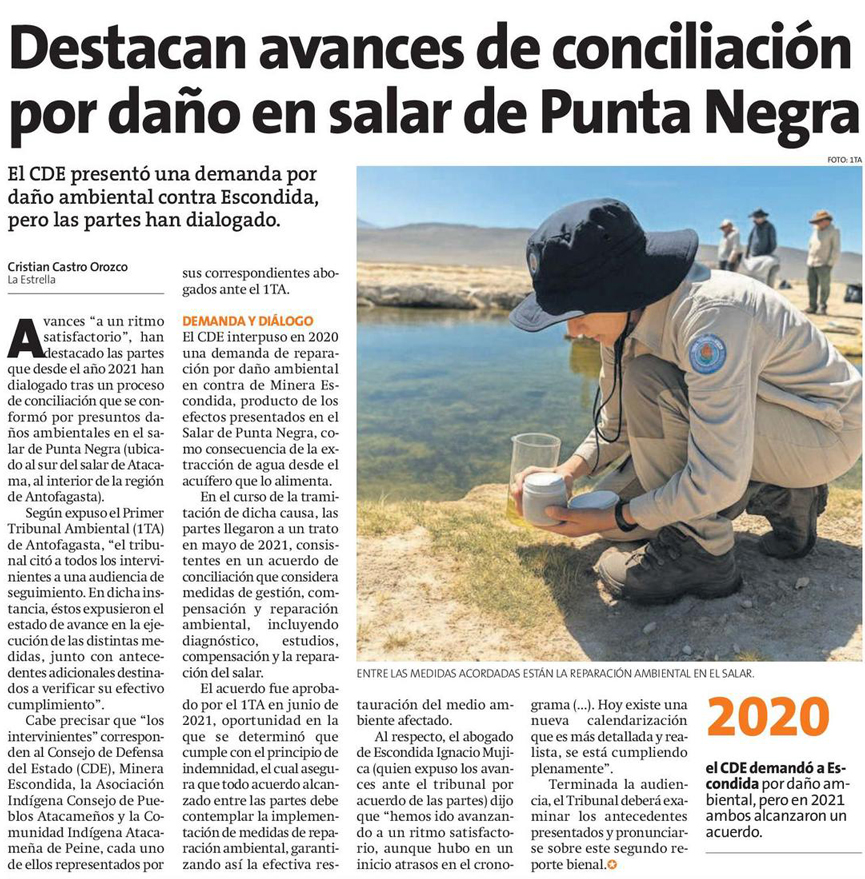 1TA revisa avance de conciliación por daño ambiental en Salar Punta Negra - (El Mercurio de Calama)
