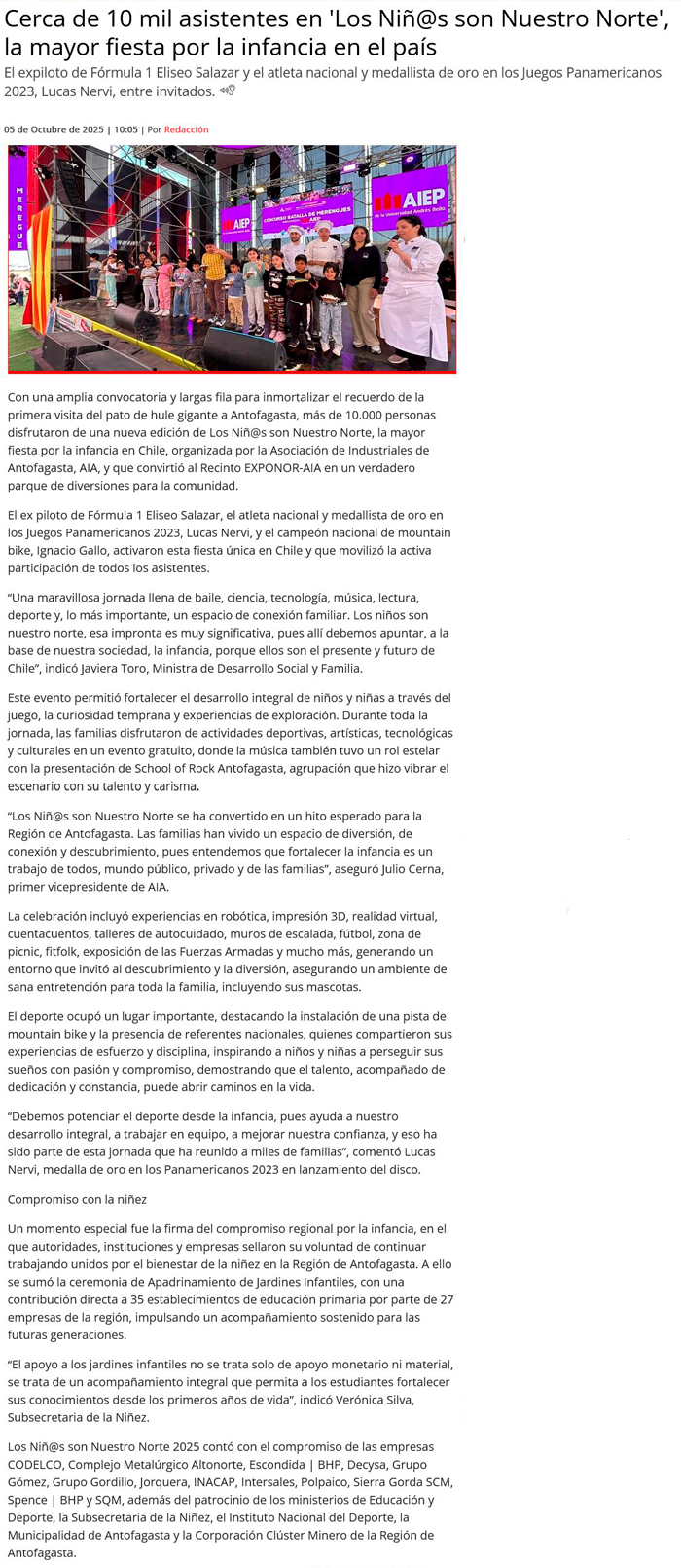 Más de 10 mil asistentes en "Los niñ@s son nuestro norte", la mayor fiesta en Chile por la infancia - (reporteminero)