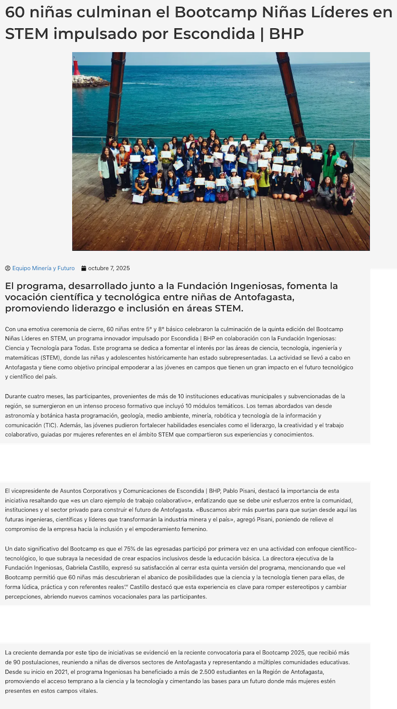 Impulso a las carreras STEM: 60 niñas finalizan Bootcamp impulsado por Escondida | BHP - (mch.cl)