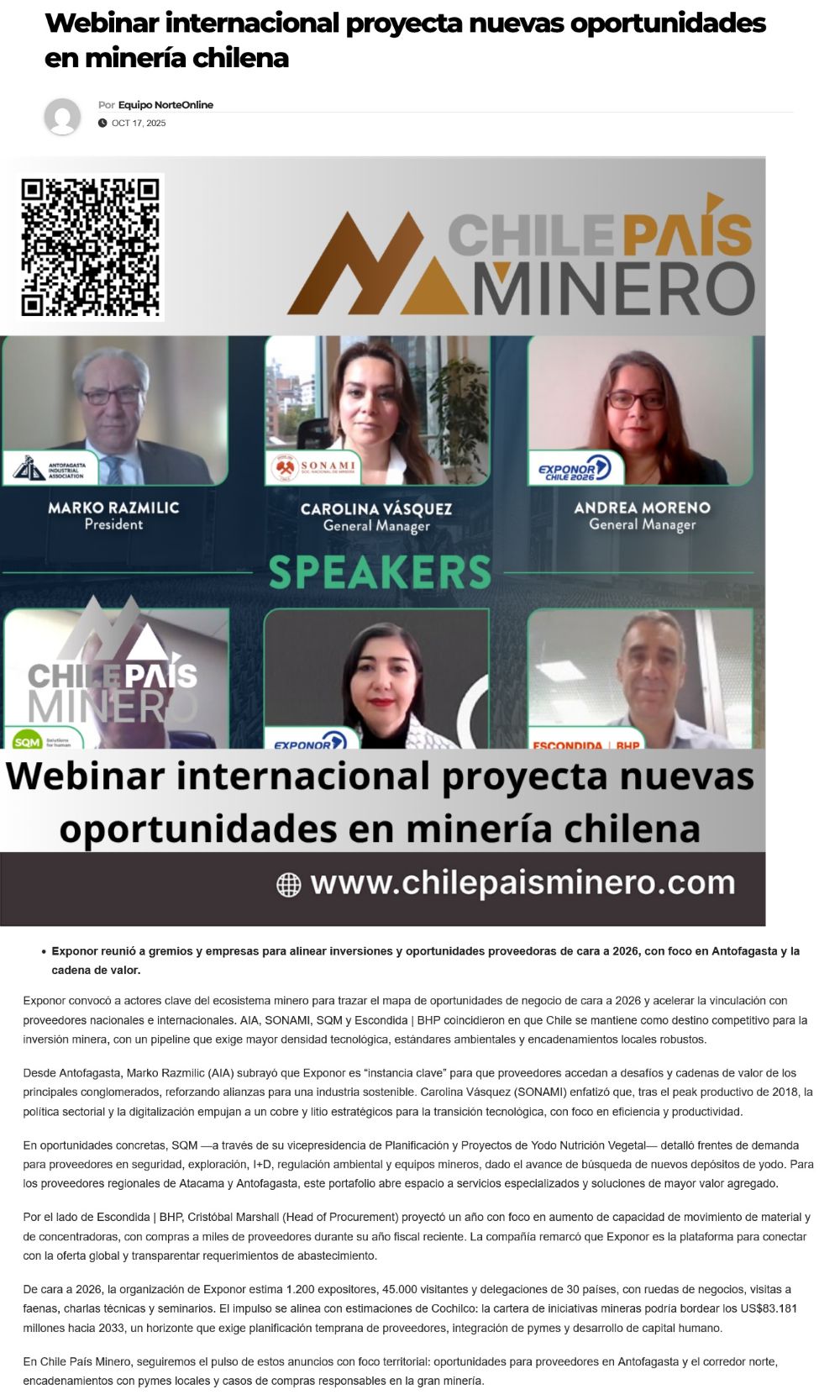 Webinar internacional EXPONOR destaca el potencial de la minería chilena - (redimin)
