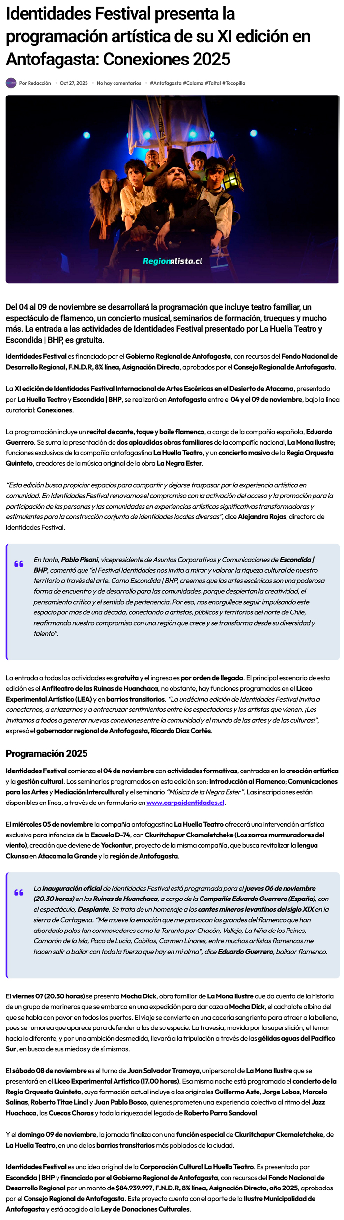 Identidades Festival presenta la programación artística de su XI edición en Antofagasta: Conexiones 2025 - (regionesnoticias.cl)
