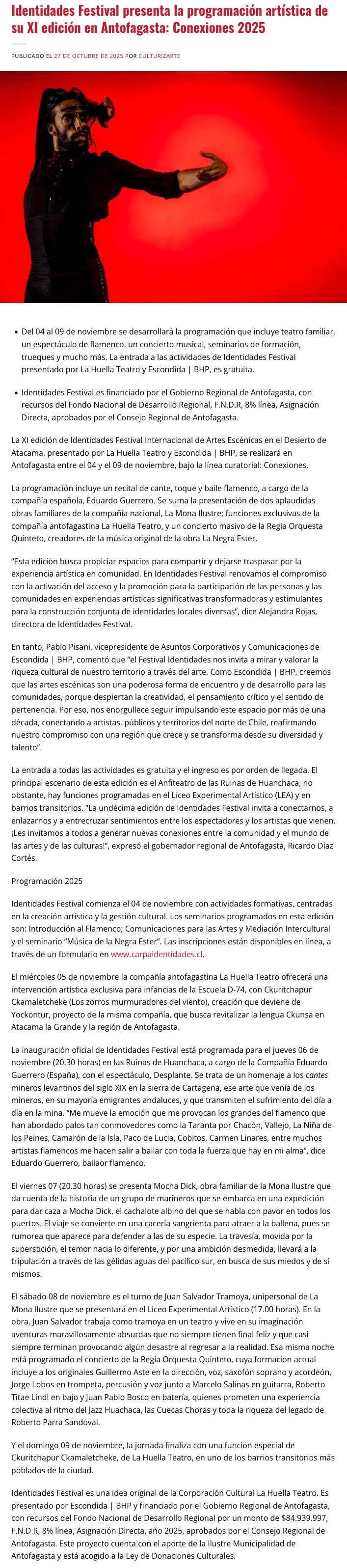Identidades Festival presenta la programación artística de su XI edición en Antofagasta: Conexiones 2025 - (regionesnoticias.cl)