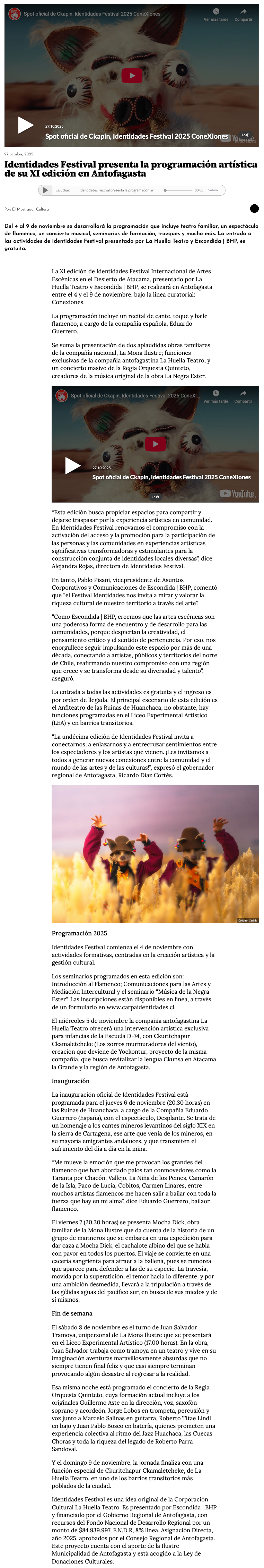 Identidades Festival presenta la programación artística de su XI edición en Antofagasta: Conexiones 2025 - (regionesnoticias.cl)