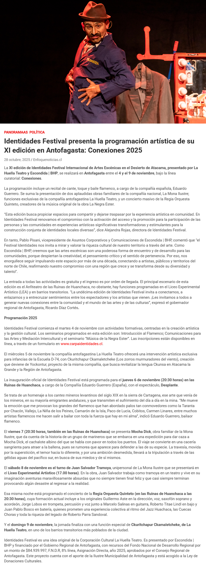 Identidades Festival presenta la programación artística de su XI edición en Antofagasta: Conexiones 2025 - (cpcomunicaciones.cl)