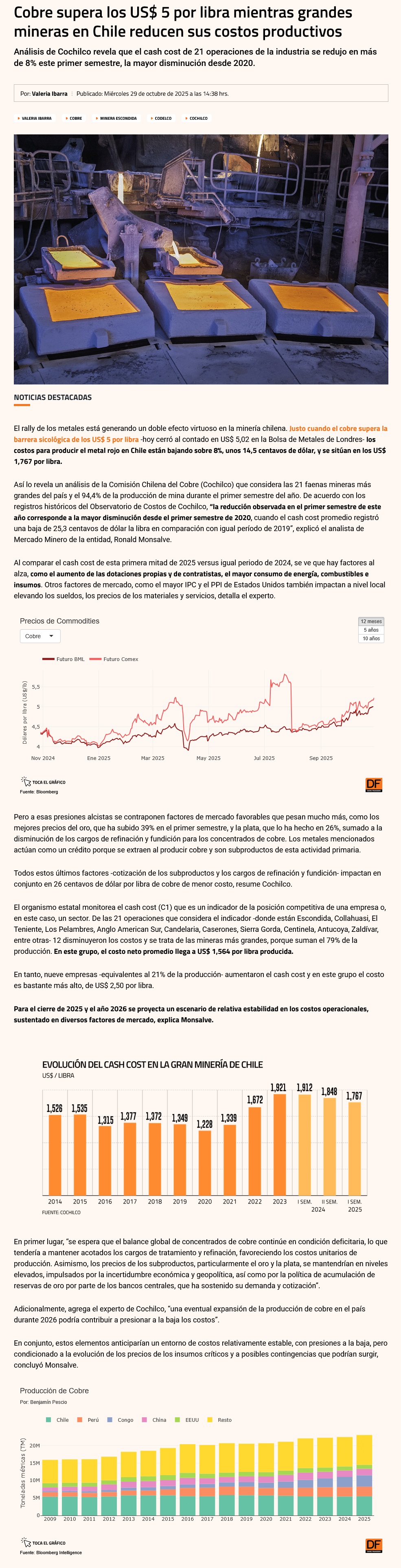 El cobre supera los US$ 5 por libra y marca un hito histórico para Chile - (redimin)