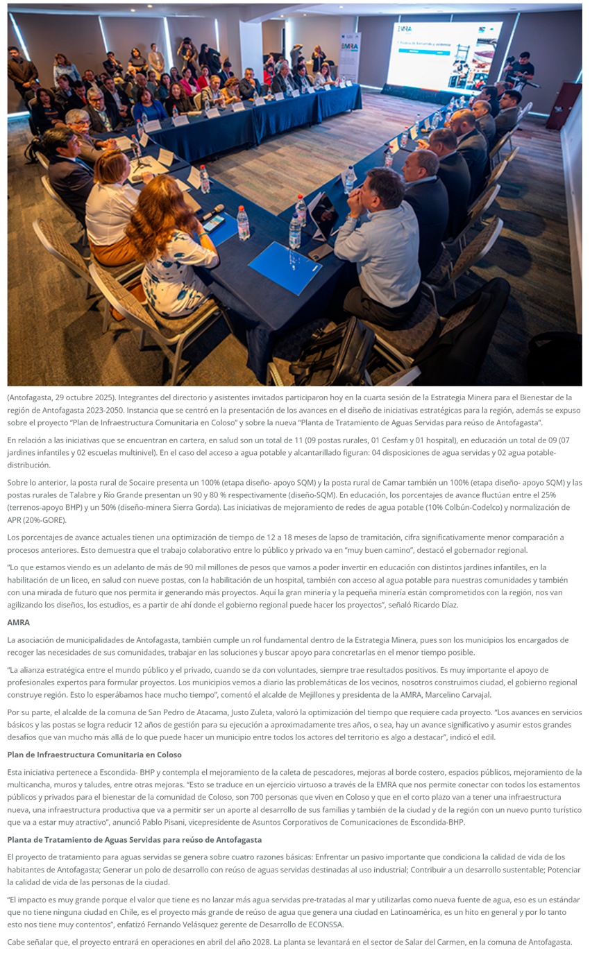 Estrategia Minera de Antofagasta: Notable avance de proyectos en salud, educación y agua potable-alcantarillado - (diarioangamos)