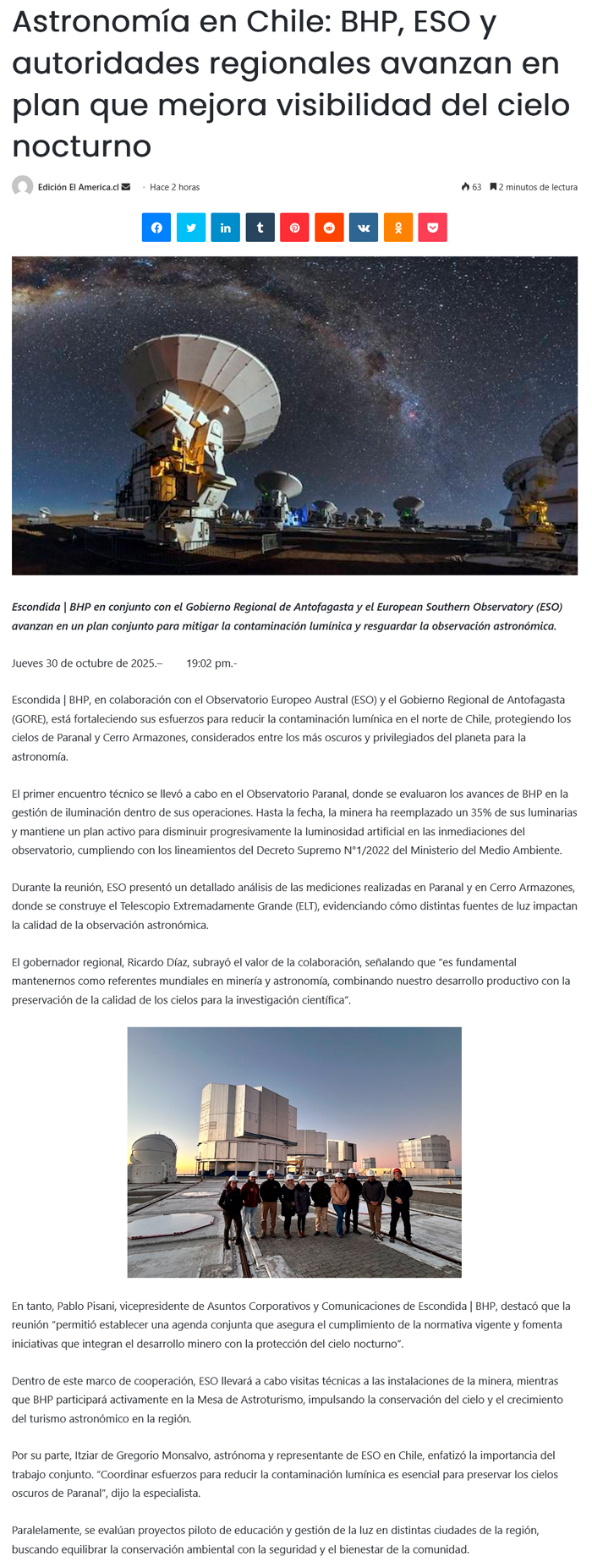 Astronomía en Chile: BHP, ESO y autoridades regionales avanzan en plan que mejora visibilidad del cielo nocturno. - (radiovoltaje.cl)