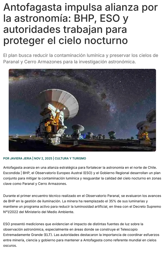Escondida y ESO unen fuerzas para proteger cielos oscuros en Antofagasta - (redimin)