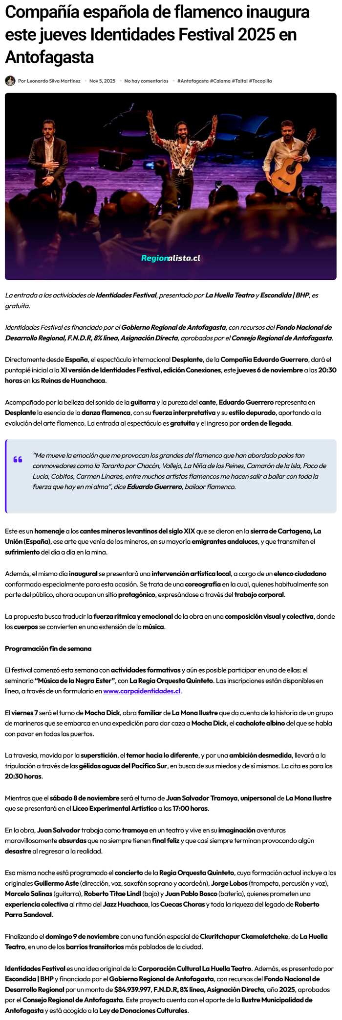 Compañía española de flamenco inaugura este jueves Identidades Festival 2025 en Antofagasta - (El Mostrador)