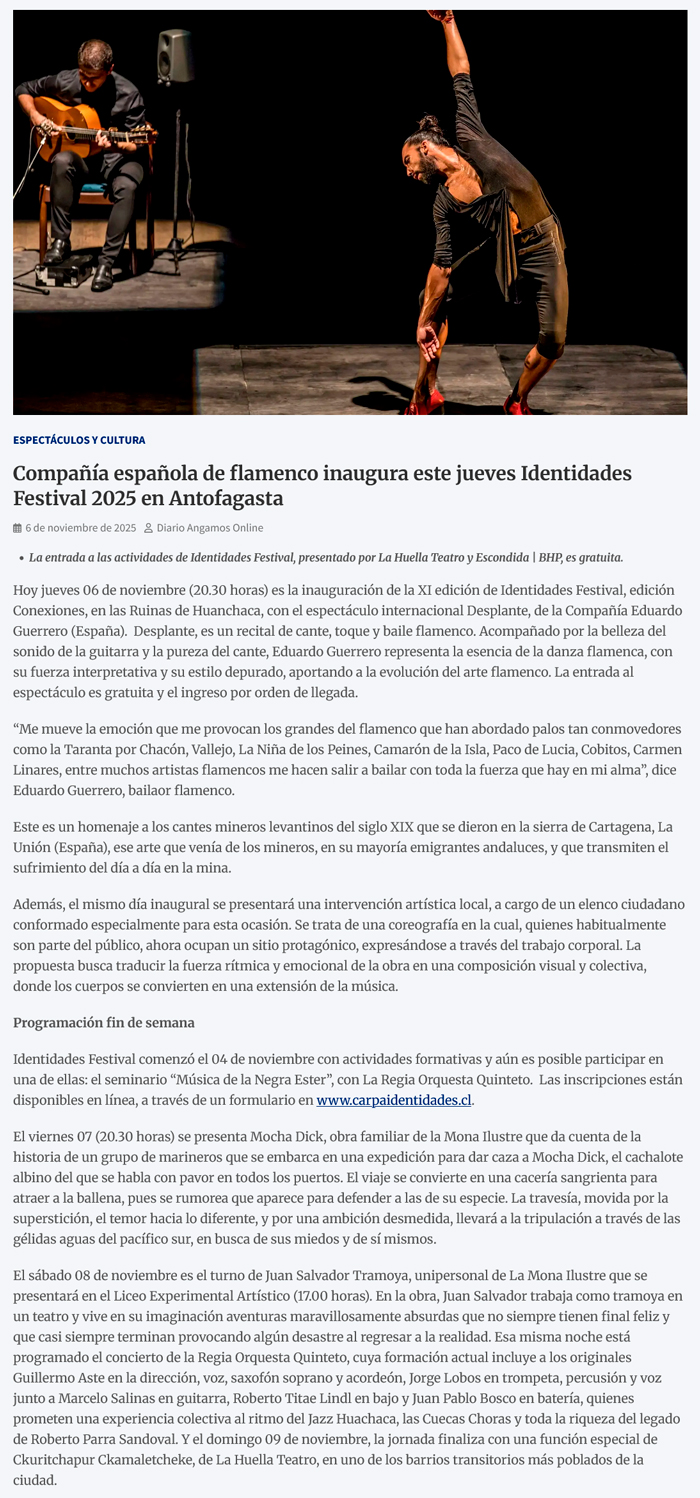 Compañía española de flamenco inaugura este jueves Identidades Festival 2025 en Antofagasta - (cpcomunicaciones.cl)