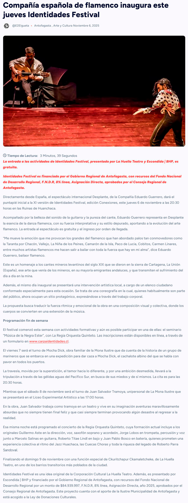 Compañía española de flamenco inaugura este jueves Identidades Festival 2025 en Antofagasta - (cpcomunicaciones.cl)