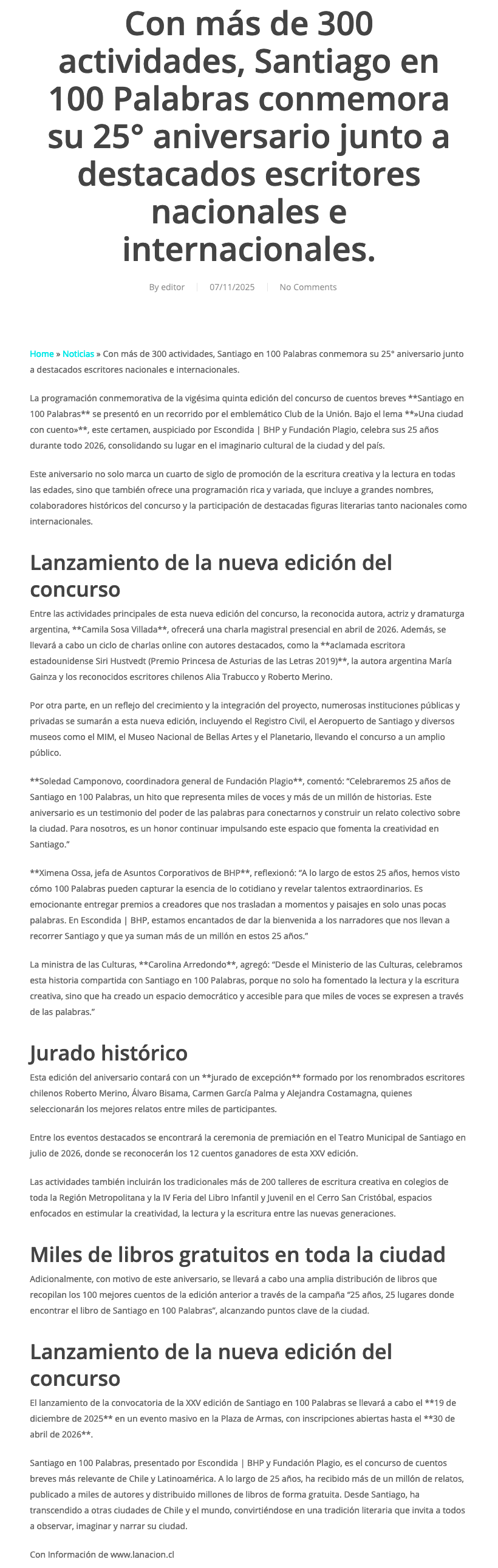Con más de 300 actividades Santiago en 100 Palabras celebra 25 años junto a reconocidos escritores nacionales y extranjeros - (laNacion)