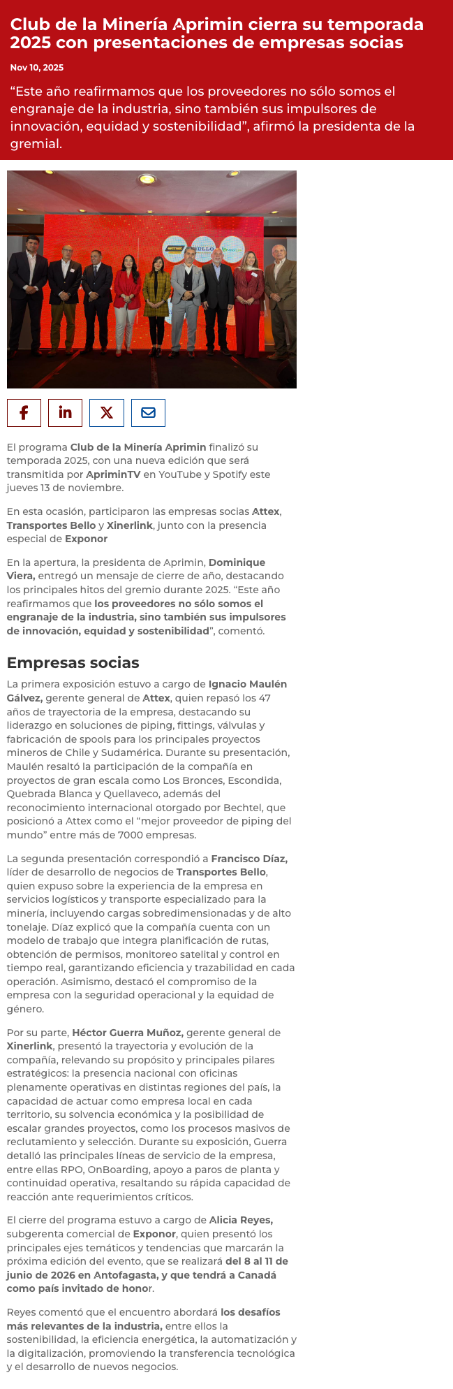 Club de la Minería cerró su temporada 2025 con presentaciones de empresas socias - (madero.cl)