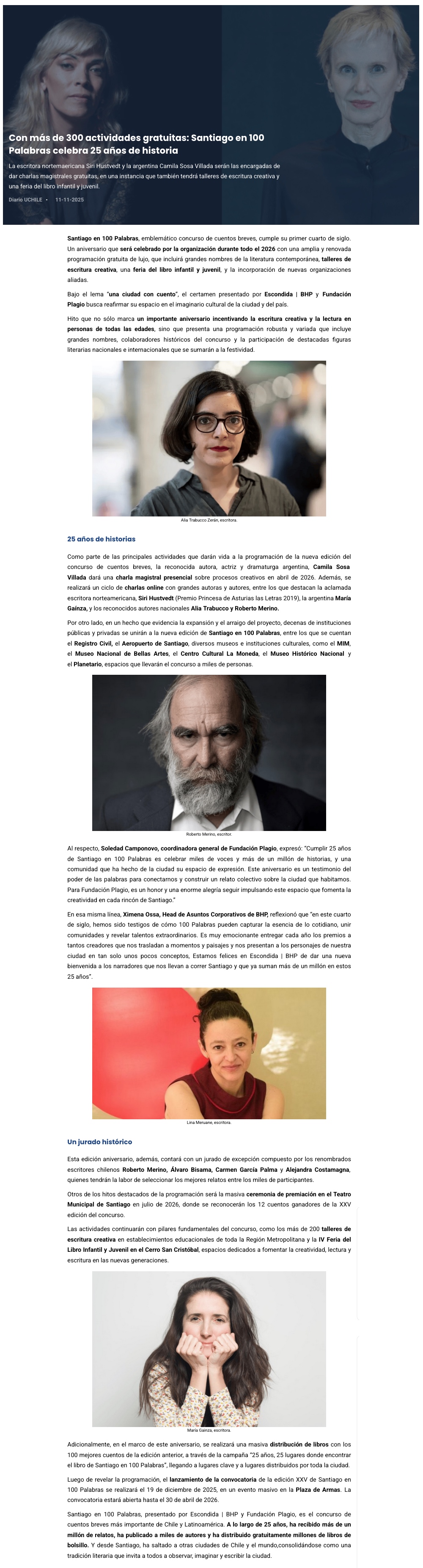 Santiago en 100 Palabras celebra 25 años con más de 300 actividades gratuitas para 2026 - (biobiochile online)