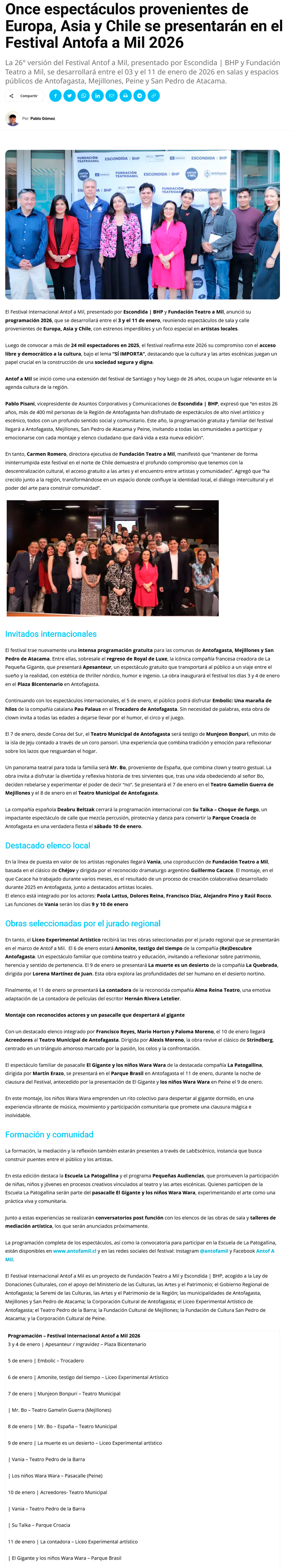 Once espectáculos provenientes de Europa, Asia y Chile se presentarán en el Festival Antof a Mil 20206 - (radiocarnaval.cl)