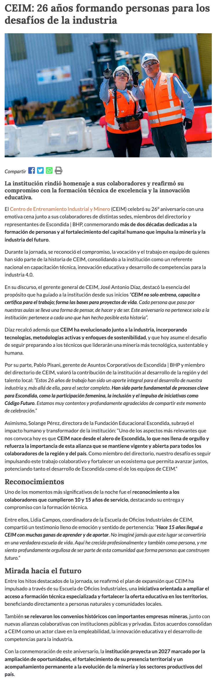CEIM: 26 años formando personas para los desafíos de la industria - (minerialocal.cl)