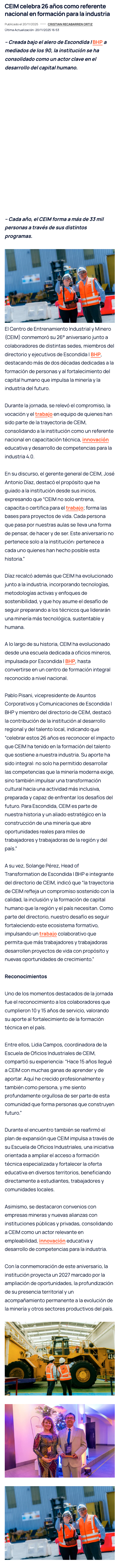 CEIM: 26 años formando personas para los desafíos de la industria - (minerialocal.cl)