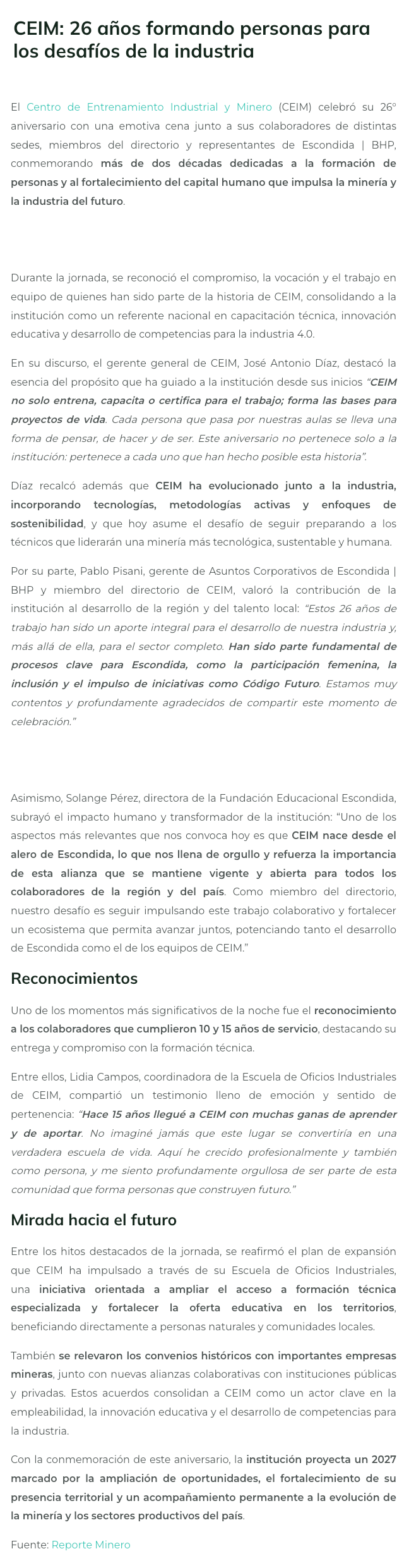 CEIM: 26 años formando personas para los desafíos de la industria - (reporteminero)