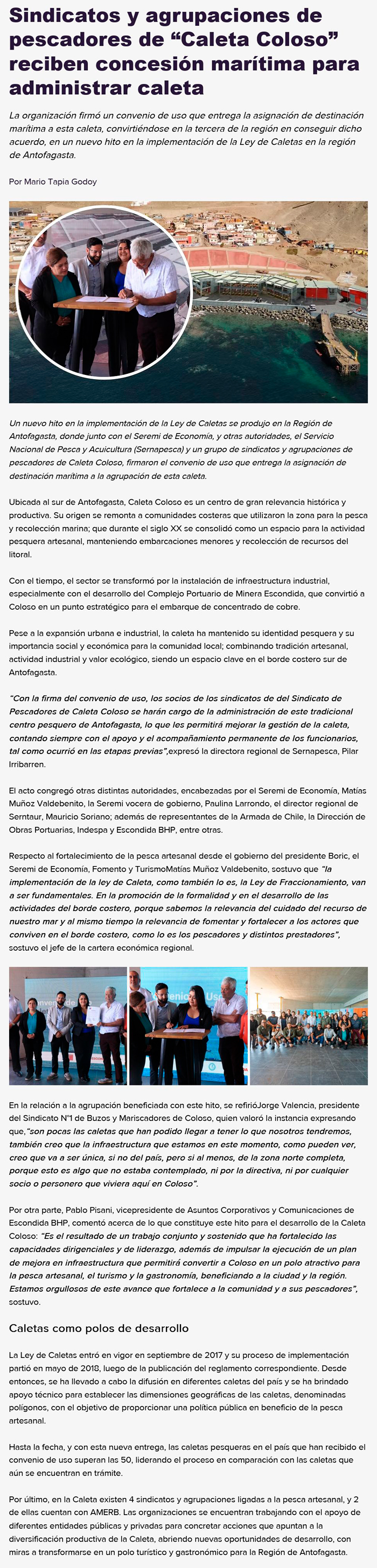Pescadores y pescadoras pasarán a administrar Caleta Coloso de Antofagasta - (Antofagasta TV)