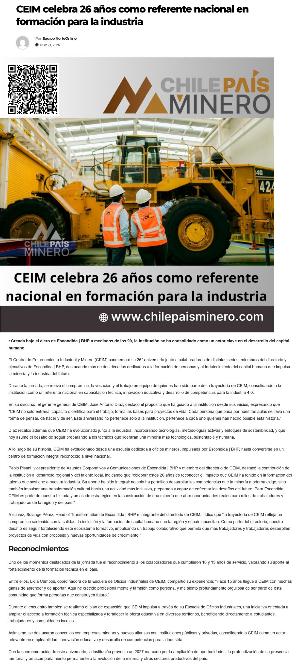 CEIM celebra 26 años como referente nacional en formación para la industria - (portalminero)
