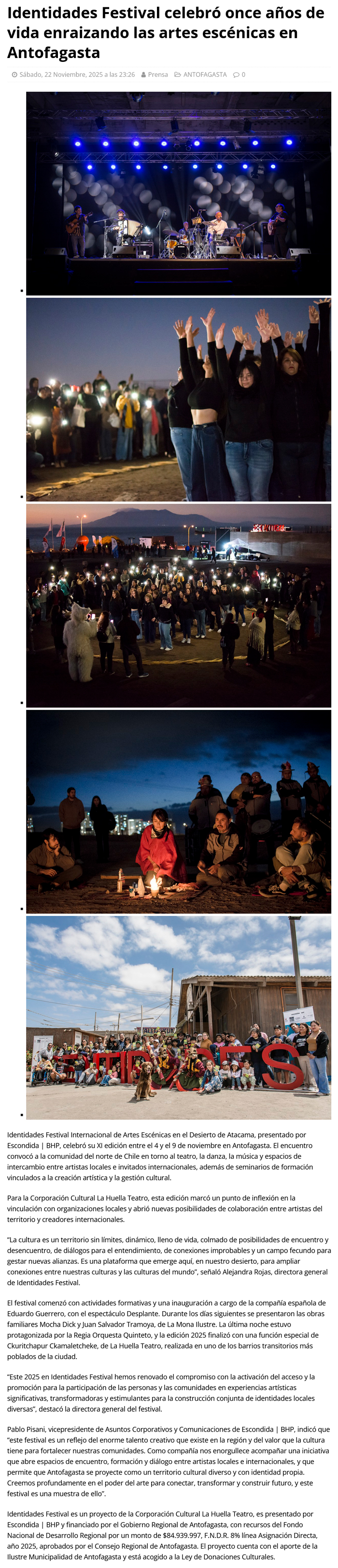 Identidades Festival celebró once años de vida enraizando las artes escénicas en Antofagasta - (antofacity.com)