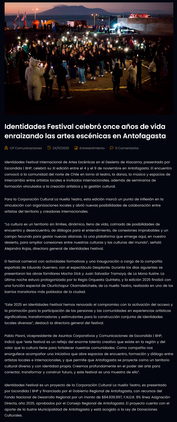 Identidades Festival celebró once años de vida enraizando las artes escénicas en Antofagasta - (enfoquenoticias.cl)