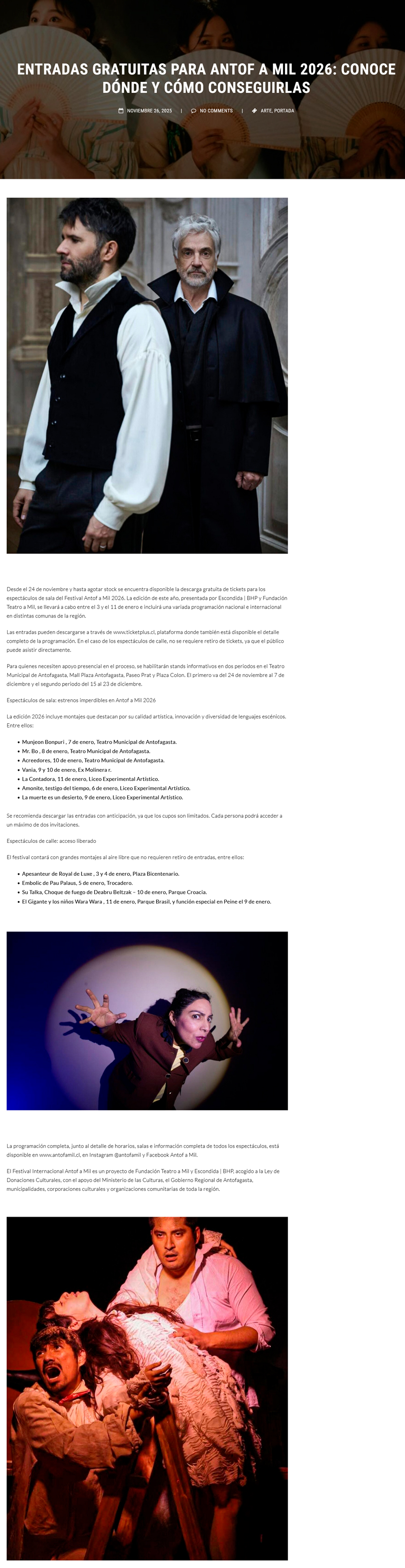 Festival Antofa a Mil 2026 inicia entrega sin costo de tickets para su programación teatral - (elreferente.cl)