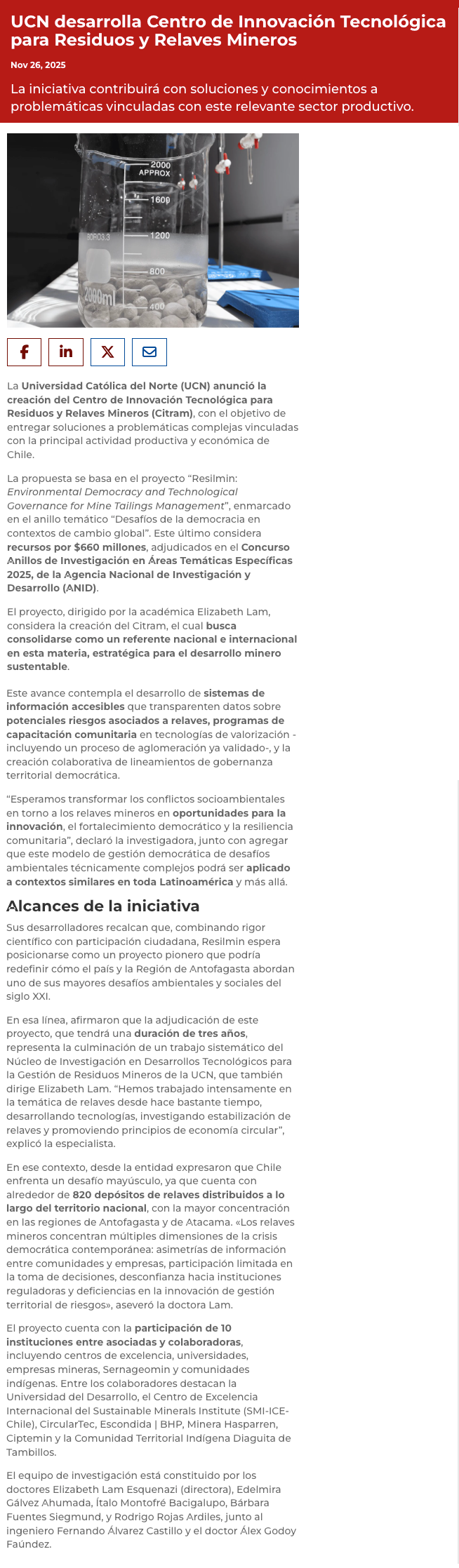 UCN crea Centro de Innovación Tecnológica para Residuos y Relaves Mineros - (ucn.cl)