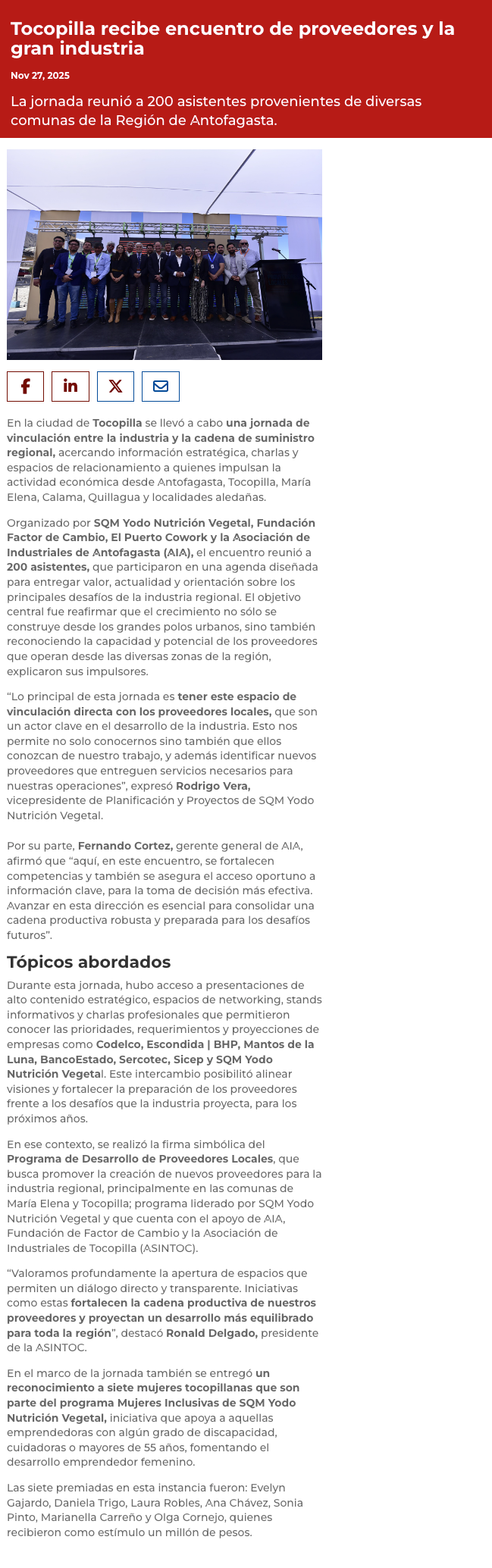 Por primera vez Tocopilla es epicentro de encuentro de proveedores y la gran industria - (mvcomunicaciones.cl)