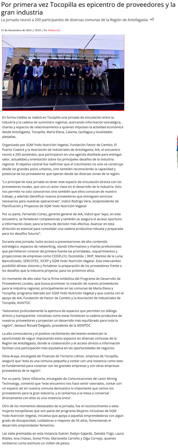 Por primera vez Tocopilla es epicentro de encuentro de proveedores y la gran industria - (mvcomunicaciones.cl)