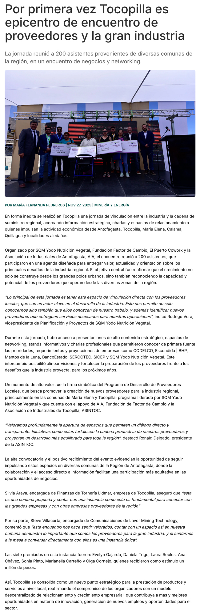 Por primera vez Tocopilla es epicentro de proveedores y la gran industria - (soyantofagasta)