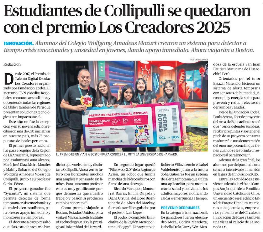 Estudiantes de Collipulli se quedaron con el premio Los Creadores 2025 - (El Mercurio de Antofagasta)