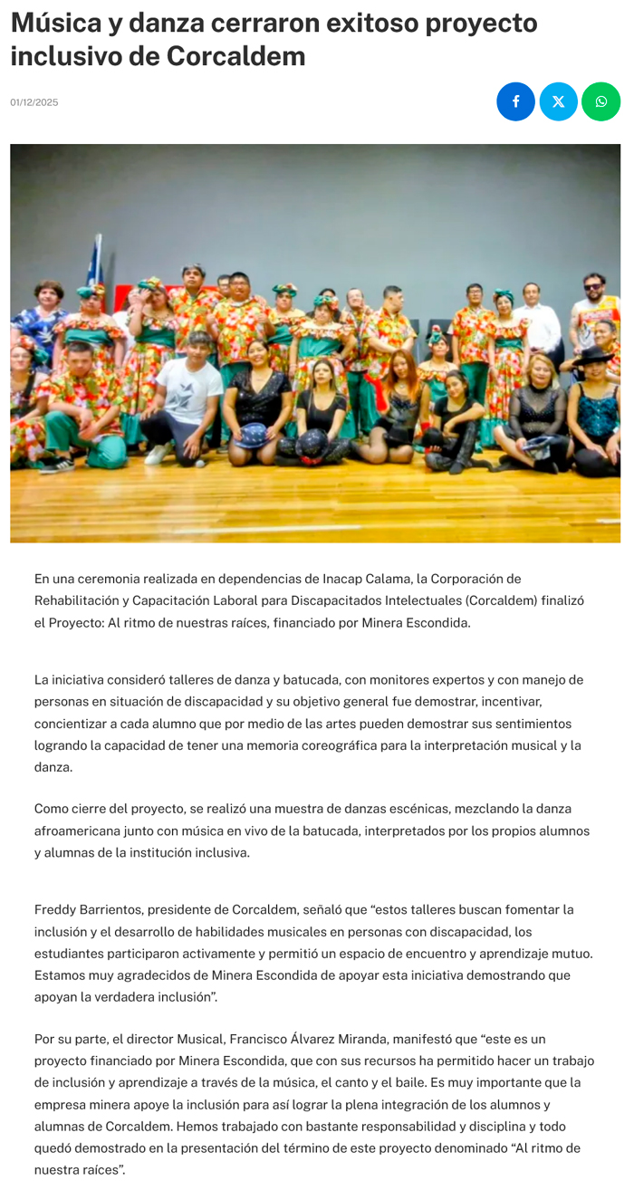 Estudiantes de Corcaldem muestran avance en danza afro y batucada durante cierre de proyecto inclusivo - (elreferente.cl)