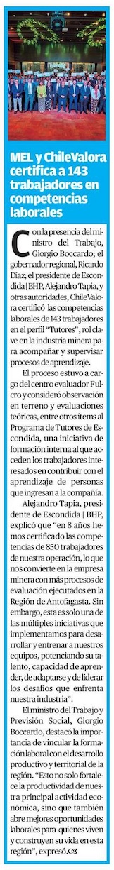 Escondida | BHP alcanza récord regional con más de 850 trabajadores certificados por ChileValora - (regionalista.cl)