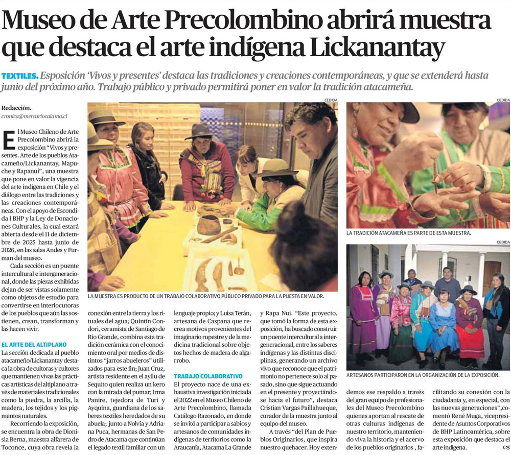 Nueva exposición se inaugura en el Precolombino “Vivos y presentes. Arte de los pueblos Atacameño/Lickanantay, Mapuche y Rapanui” - (culturizarte.cl)