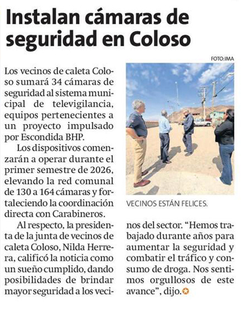 Comunidad de Coloso integrará 34 nuevas cámaras al sistema municipal de televigilancia 24/7 - (antofagastanoticias)