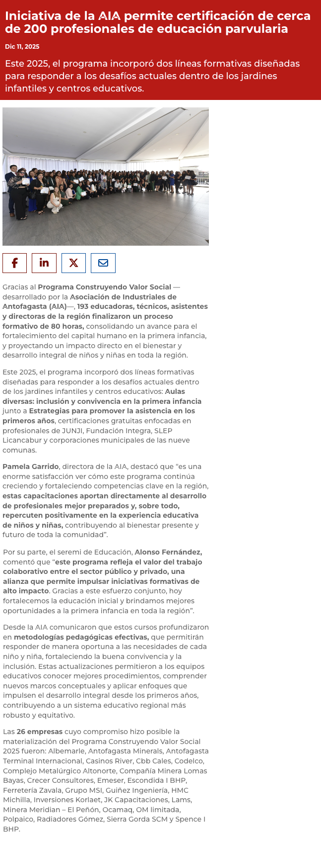 Certifican a 193 profesionales de educación parvularia de la región de Antofagasta gracias a programa único en Chile - (timeline)