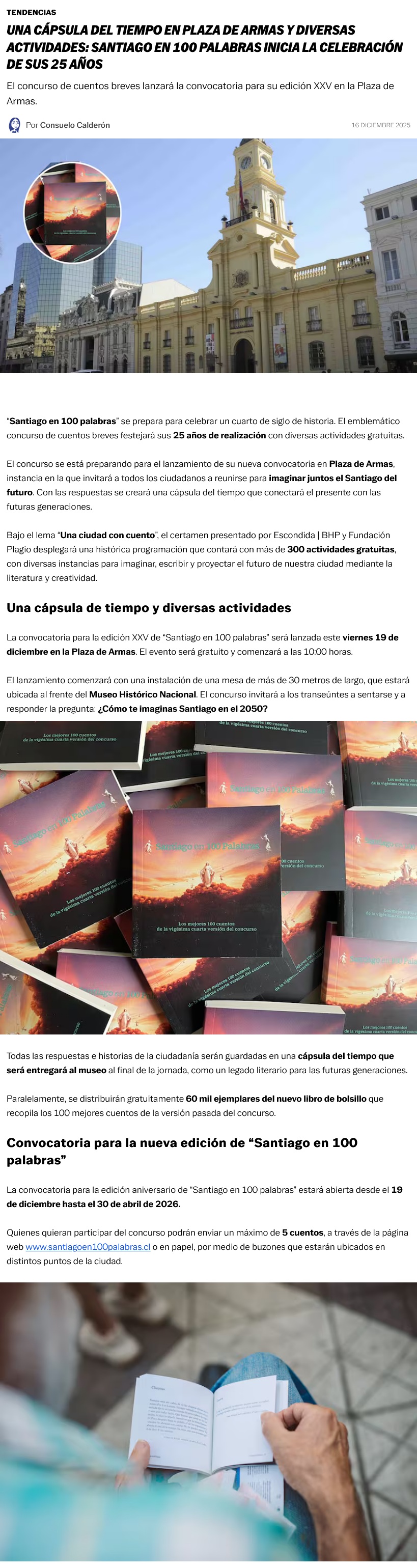 Santiago en 100 palabras inicia la celebración de sus 25 años con una cápsula del tiempo en Plaza de Armas - (tierramarillano.cl)