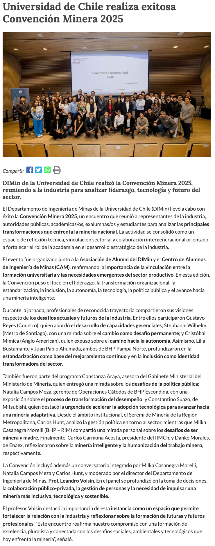 Departamento de Ingeniería de Minas de la Universidad de Chile realizó exitosa Convención Minera 2025 - (portalminero)