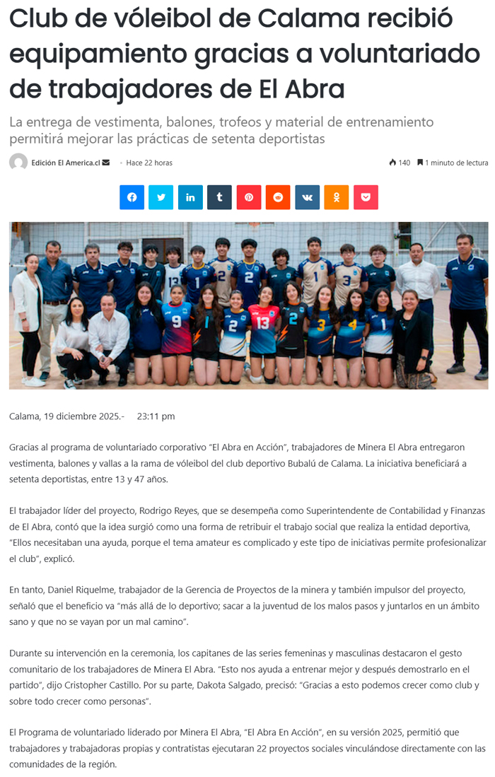 Club de vóleibol calameño recibió implementación deportiva - (La Estrella)