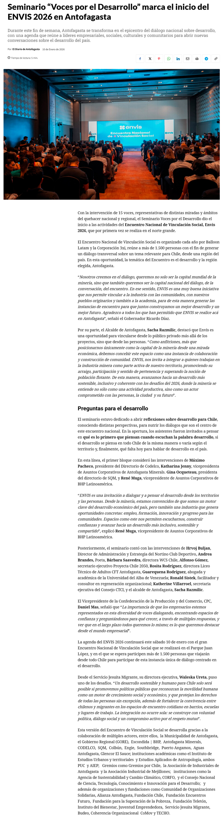Seminario Voces por el Desarrollo marca el inicio del ENVIS 2026 en Antofagasta - (timeline)