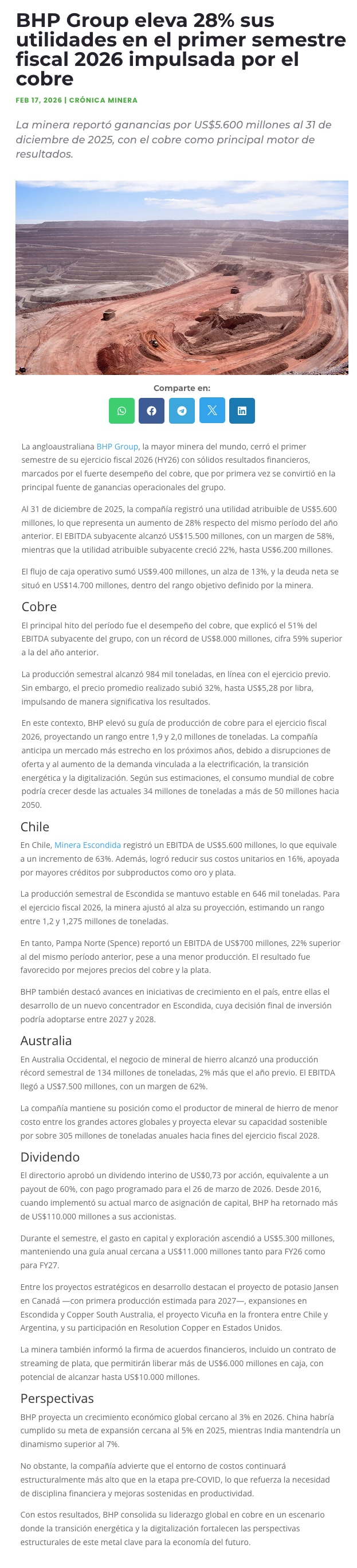 Resultados de BHP: US$6,2 mil millones y la señal que confirma el “ciclo cobre” desde Chile - (redimin)