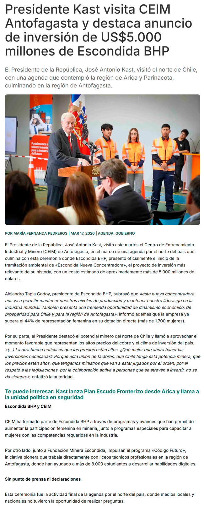 Kast visita el CEIM en Antofagasta y destaca minería, inversión y formación técnica como ejes del crecimiento - (redimin)