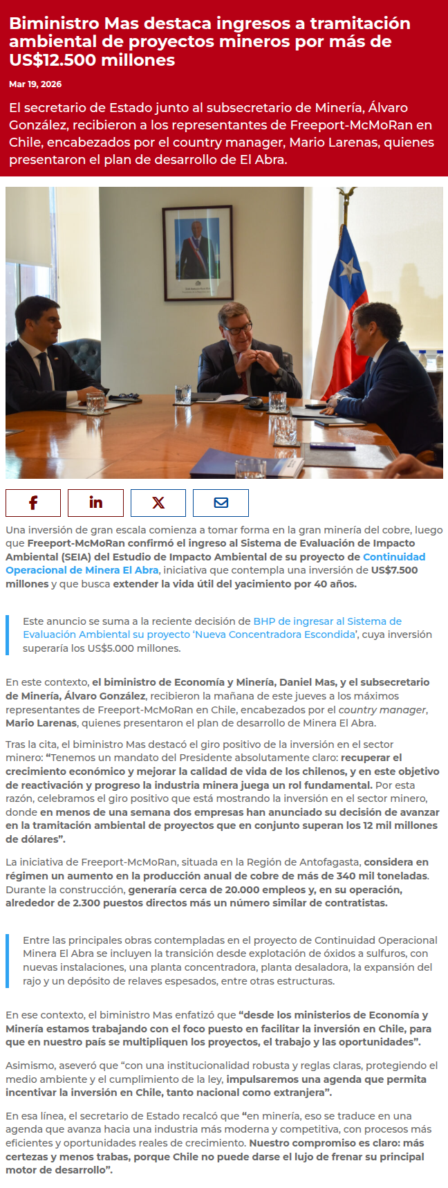 Monto de inversión minera en calificación ambiental sube de US$9.000 a más de US$21.000 millones en una semana - (electromineria)
