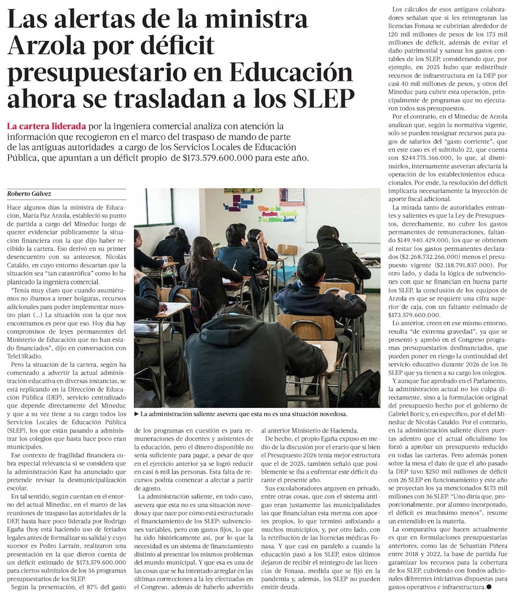Profesores y rectores expresan "preocupación" a ministra Arzola por ajuste en Educación - (El Mercurio de Santiago)
