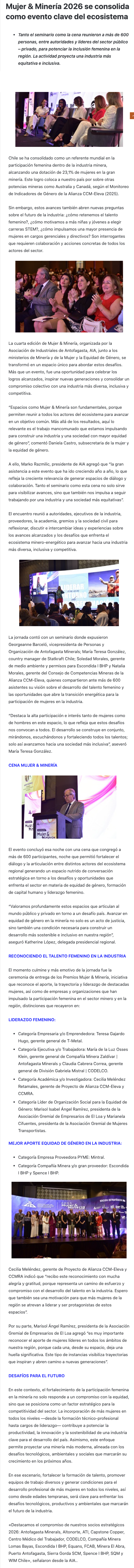MUJER & MINERÍA 2026 se consolida como evento clave del ecosistema y distingue a mujeres destacadas - (revistacrisol.cl)